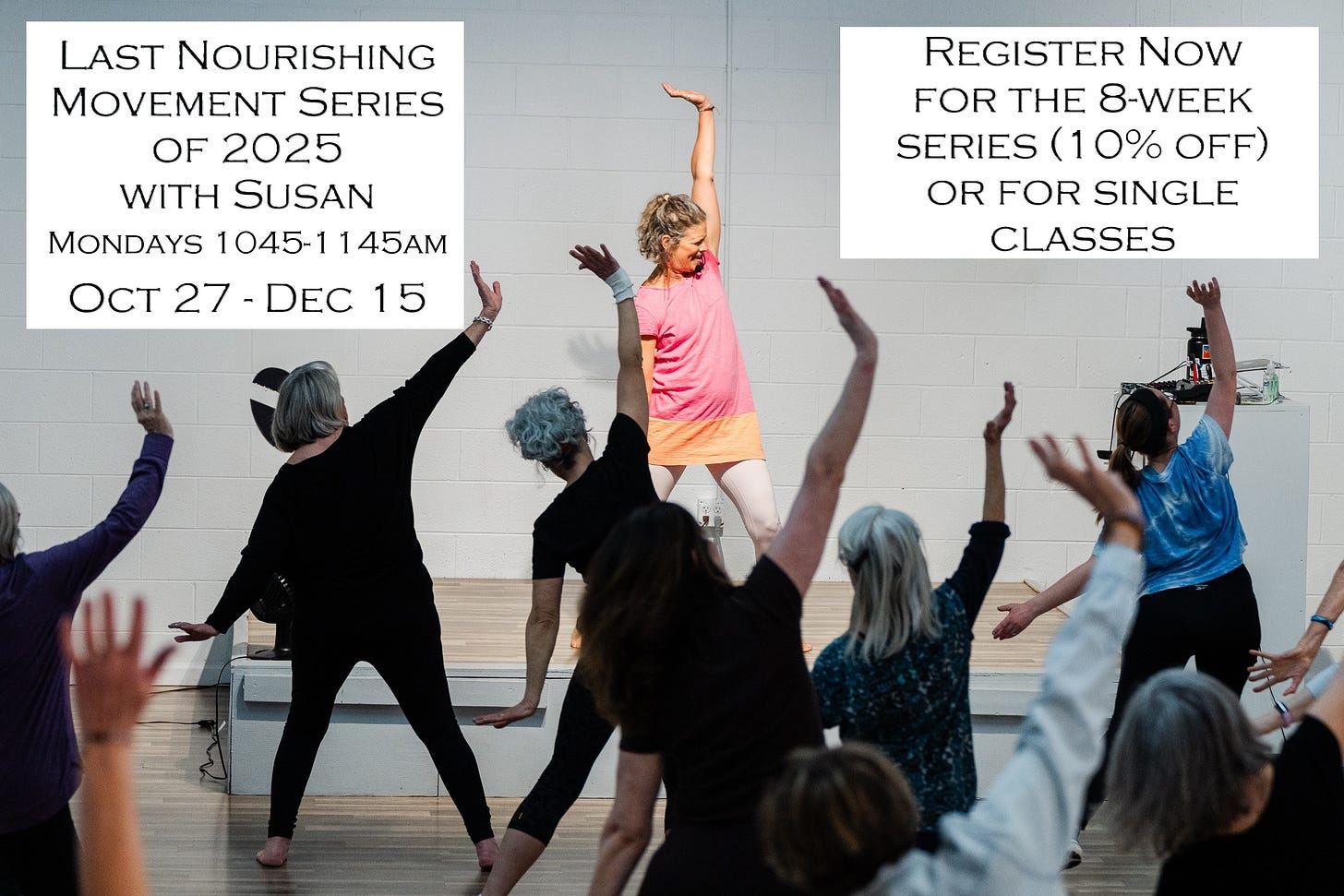 The last series of Nourishing Movement classes continues in-person at the Jazzercise Studio in downtown Charlottesville on Monday, Oct 27 from 1045-1145am. The 8-week series with the theme of The Root of Resilience: Nervous System Regulation & Finding Strong Ground runs from Oct 27-Dec 15.